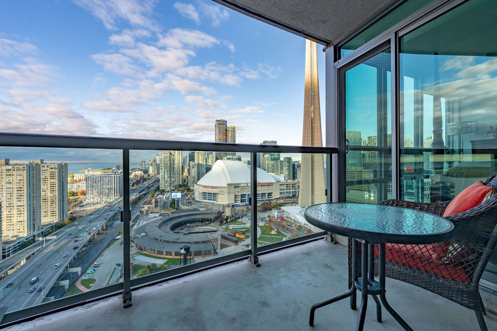Experience Toronto at its best from this stunning 1 Bedroom + Den suite on the 37th floor, showcasing panoramic views of the CN Tower, Rogers Centre, Ripley’s Aquarium, and Lake Ontario. Rarely available with this breathtaking exposure, this residence offers the perfect balance of style, comfort, and convenience. Enjoy a spacious open-concept layout with stunning laminate flooring, a modern kitchen featuring granite countertops, a stylish backsplash, and a built-in breakfast bar. The large primary bedroom easily fits a king-size bed and dresser, with balcony access shared by both the bedroom and living room—perfect for morning coffee or watching the Blue Jays in action. The generous den provides versatility for a home office, dining area, or guest space. The building offers direct access to the underground PATH, connecting you seamlessly to downtown Toronto’s business core, Union Station, and the city’s top attractions. Steps to the waterfront, Scotiabank Arena, top-rated restaurants, and vibrant nightlife. Residents enjoy premium amenities including an indoor pool, hot tub, sauna, fitness centre, basketball half-court, outdoor terrace, games and party rooms, theatre, library, boardroom, guest suites, and 24-hour concierge with secure floor access. Urban luxury, unbeatable views, and convenience—all in one exceptional address.